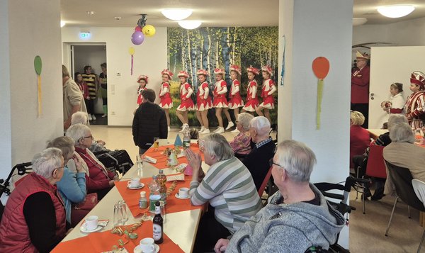 Schon beim Einmarsch der bunt kostümierten Truppe hellten sich die Gesichter unserer Bewohnerinnen und Bewohner auf. Ein echtes Highlight war der Auftritt der Kinder-, Jugend- und Prinzengarde: Mit beeindruckender Disziplin und zugleich ansteckender Spielfreude wirbelten die Tänzerinnen und Tänzer über das Parkett. Es wurde geklatscht, geschunkelt und getanzt – so viel Energie und Talent sieht man schließlich nicht alle Tage!